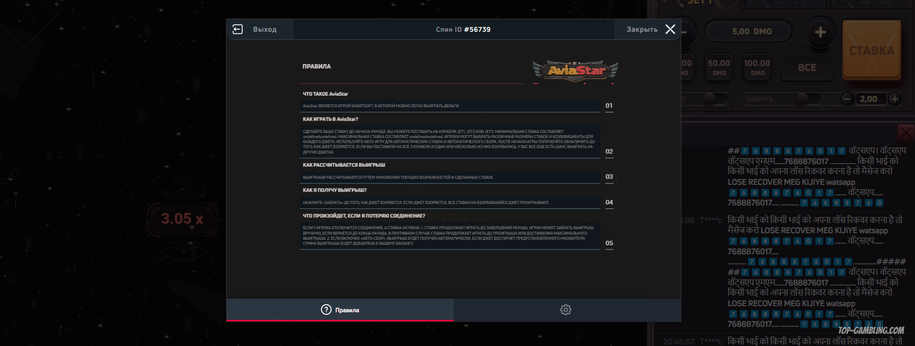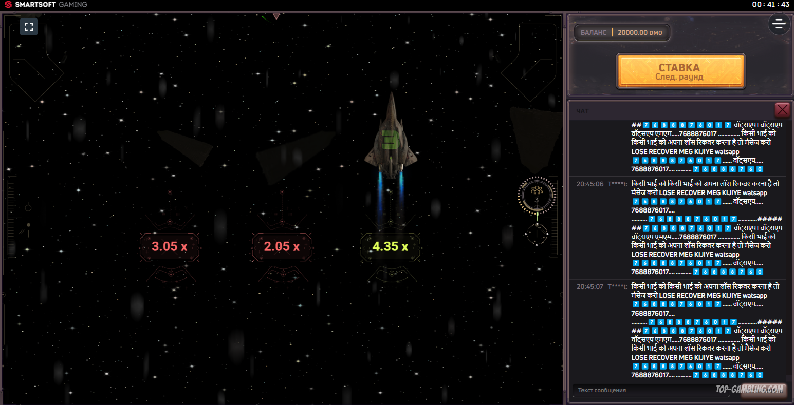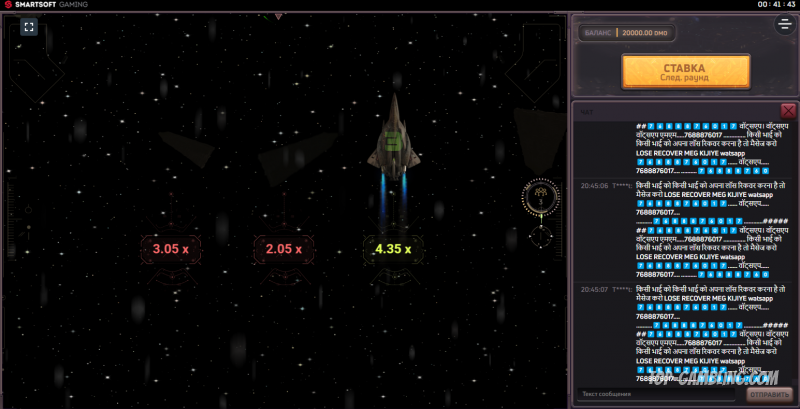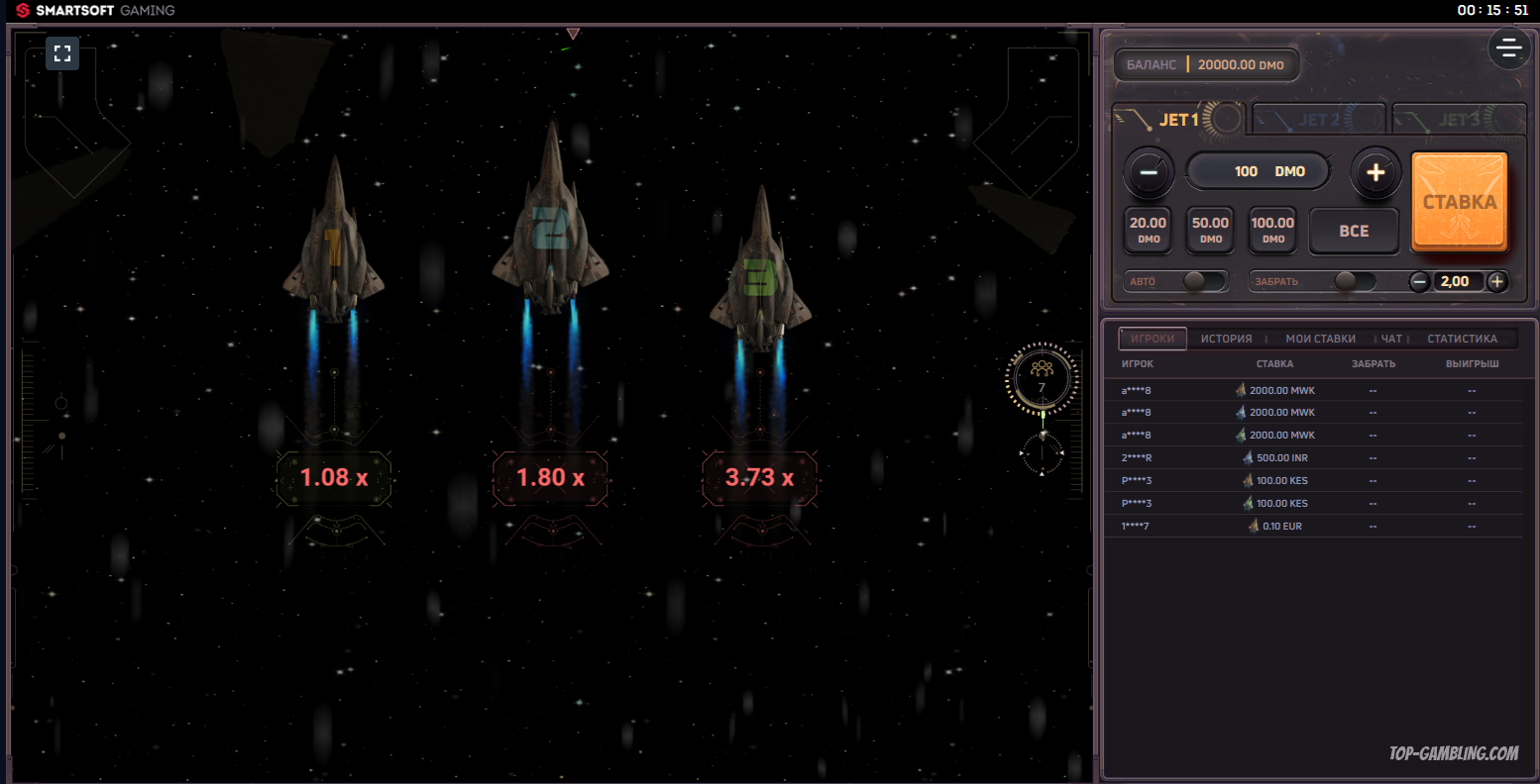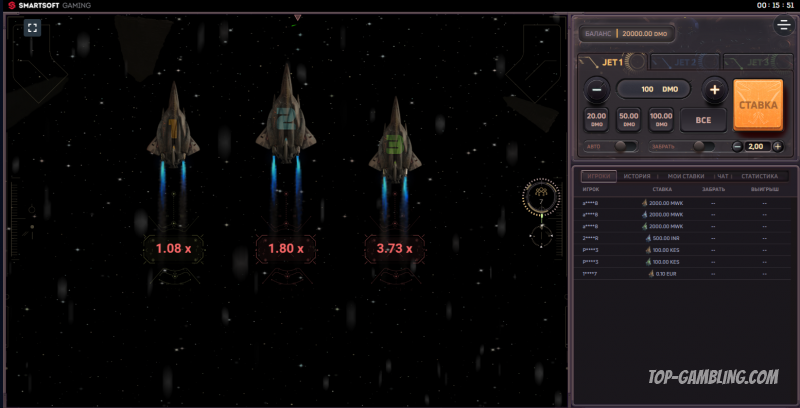 Игрок может поставить на один или несколько кораблей, а затем следить за их полётом. Главное – вовремя нажать "Забрать", иначе, если корабль разрушится, ставка будет проиграна.