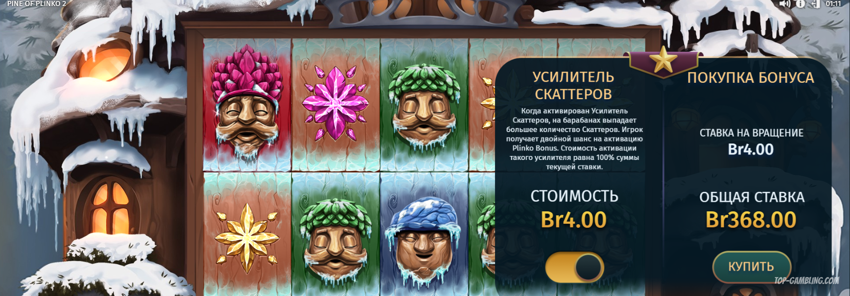 Эта опция удваивает количество Scatter-символов на барабанах, что делает активацию Plinko Bonus более вероятной. Однако за такую привилегию придется заплатить – ставка удваивается. Риск оправдан, если вы готовы играть по-крупному!