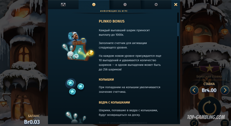 При желании можно рискнуть и попытаться увеличить это число, повторно вращая Scatter-символы, но цена за такую возможность будет высокой. Во время бонусного раунда шары падают на игровое поле, где могут попасть в призовые ячейки с множителями до 1000x.