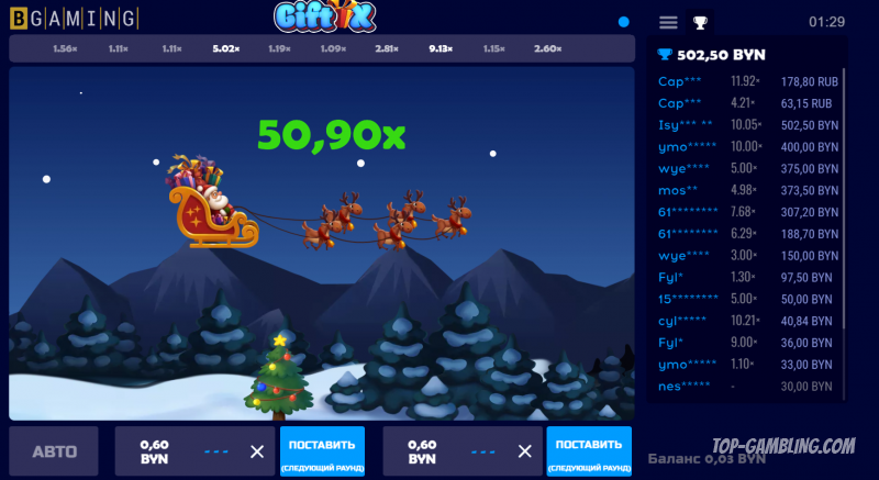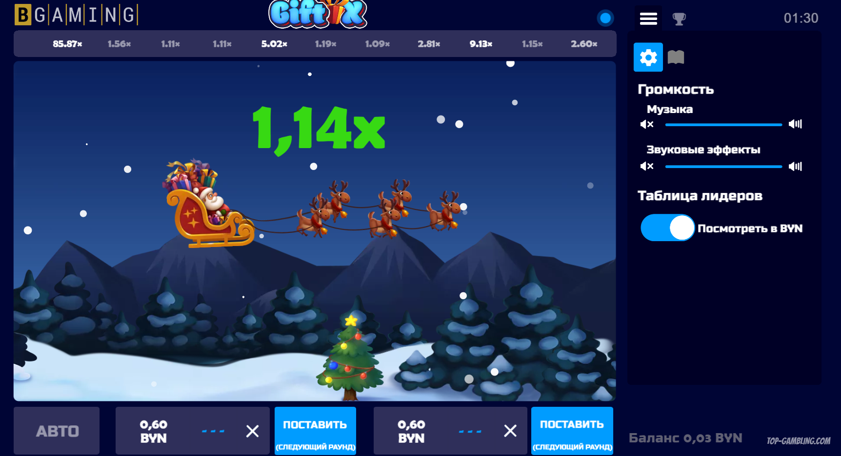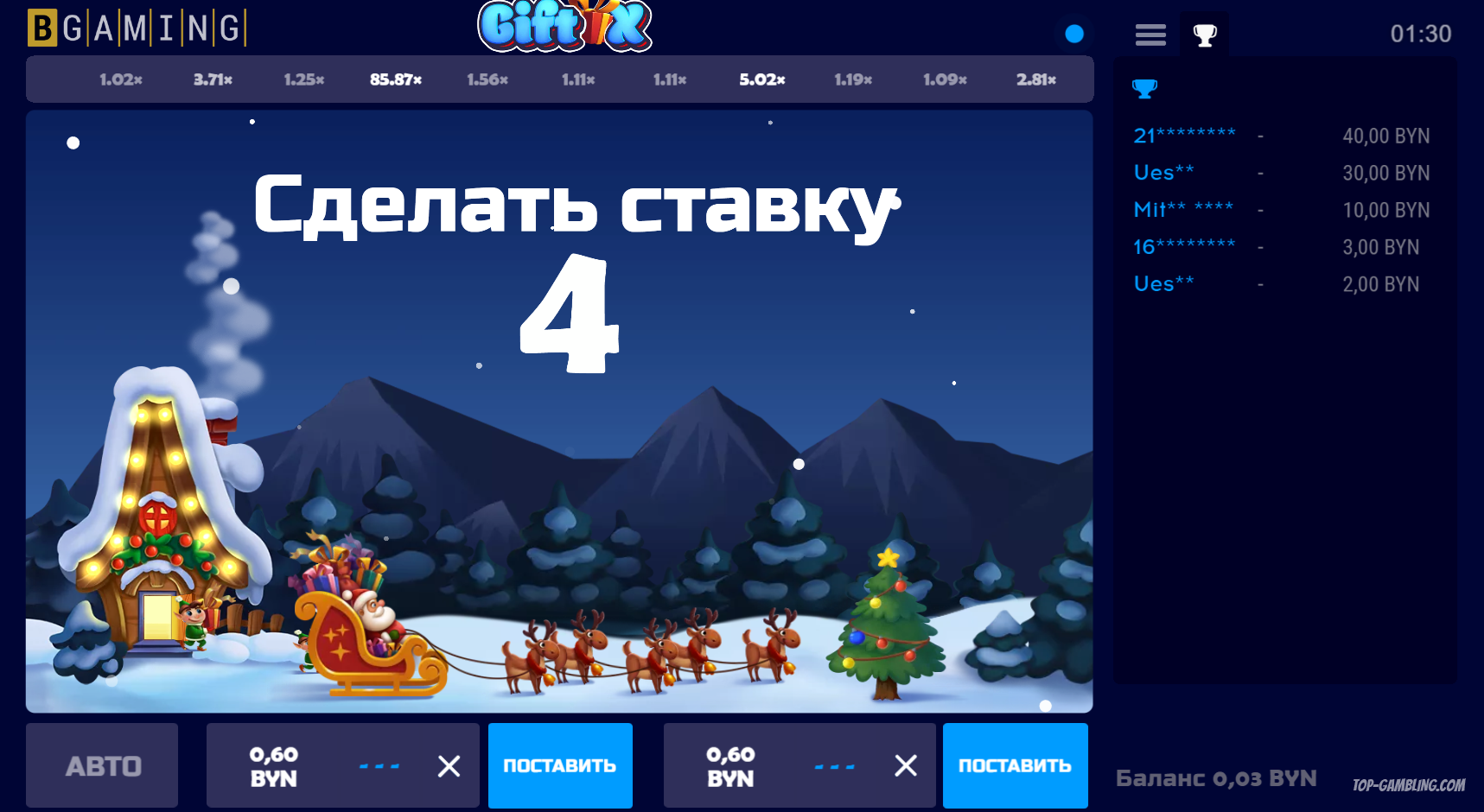 На данный момент Gift X пока не достиг популярности топовых краш-игр, однако уже завоевывает свою аудиторию. В то время как в Lucky Jet или Aviator одновременно играют тысячи пользователей, за праздничными полетами Санты в Gift X следят десятки или сотни игроков.