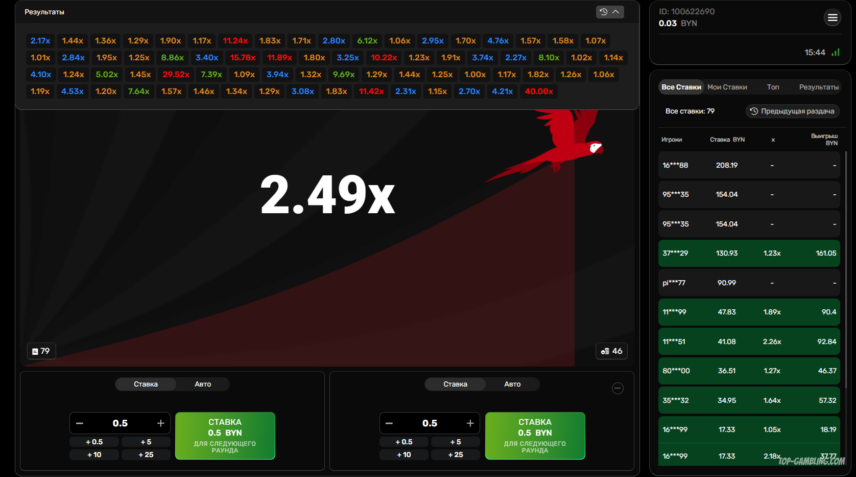 - Решите, когда забрать выигрыш – Чем дольше птица находится в полете, тем больше коэффициент. Однако, если не успеть зафиксировать прибыль, ставка аннулируется. Чтобы забрать выигрыш, нажмите "Вывести" до того, как попугай улетит.
