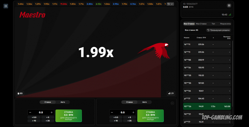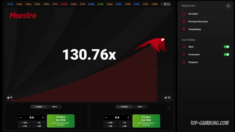 Таким образом, Maestro — это не просто азарт, но и возможность использовать стратегию, анализируя предыдущие множители в таблице результатов.