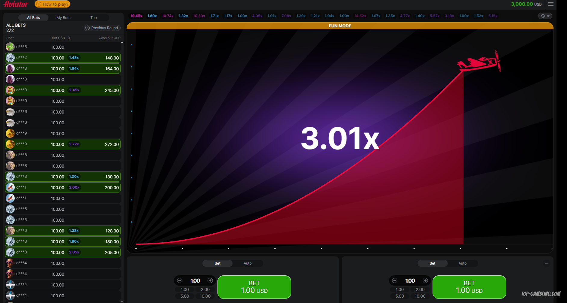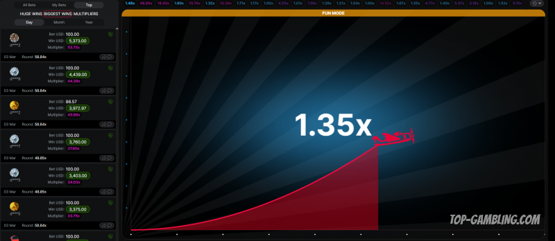 - Если множитель продолжает расти и превышает x10, то в следующих раундах нужно возвращаться к минимальным ставкам и повторять цикл.