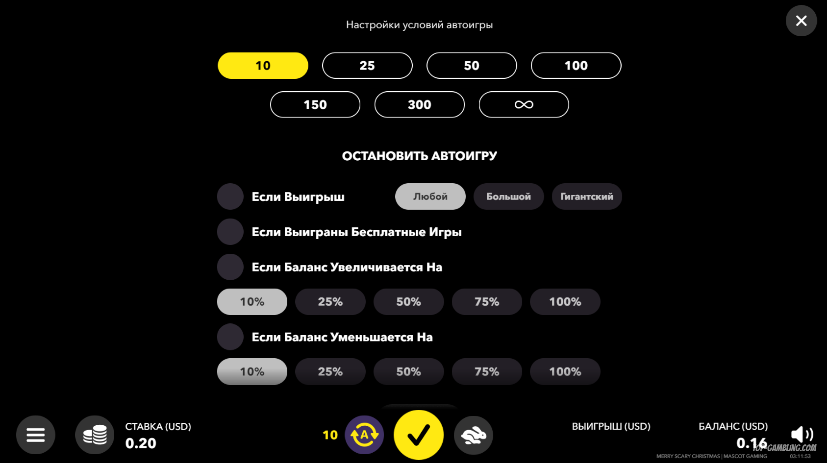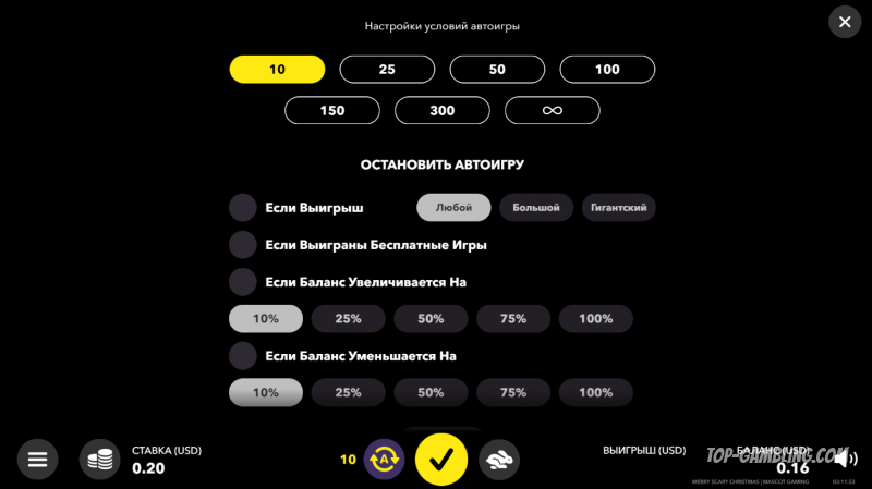 Запускай Merry Scary Christmas в режиме автоигры на небольших ставках (например, 20–30% от обычной), чтобы постепенно накопить прибыль. Длительные серии спинов в таком режиме могут привести к стабильным, хоть и не огромным выигрышам.
