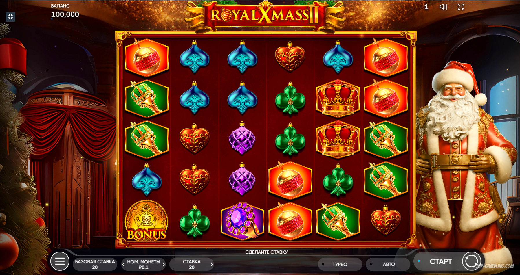 Royal X-mass 2 — это яркий рождественский слот, который сочетает классическую механику с бонусными функциями и крупными множителями.