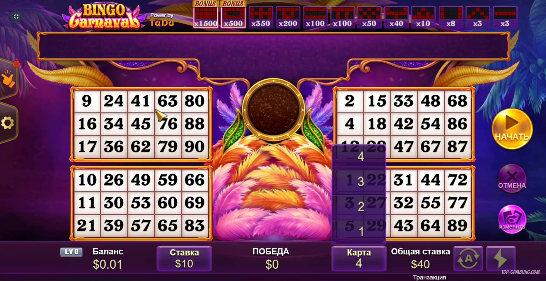 Как играть в Bingo Carnaval: правила, карты и ставки