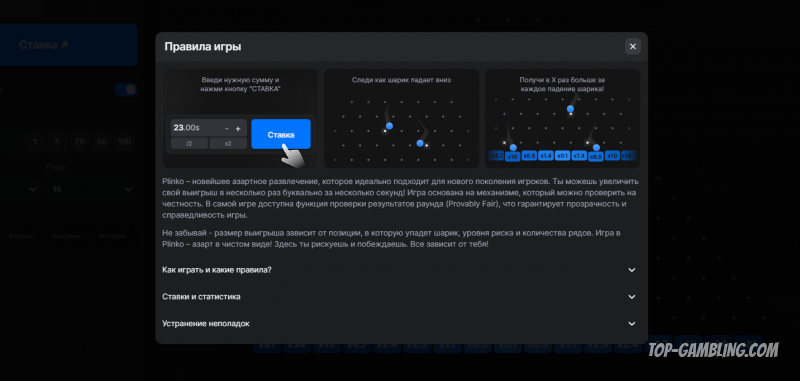 Интерфейс и функциональность Plinko
