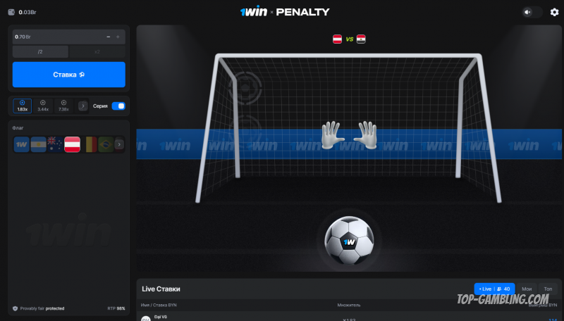 Penalty от 1win — это не просто симуляция футбольного пенальти, а настоящая мини-аркада с мгновенным результатом и минималистичным, но выразительным оформлением.