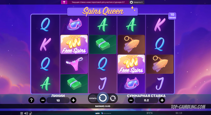 Spins Queen — это классический видеослот с современным гламурным оформлением, сочетающий простоту управления и интересные бонусные возможности.
