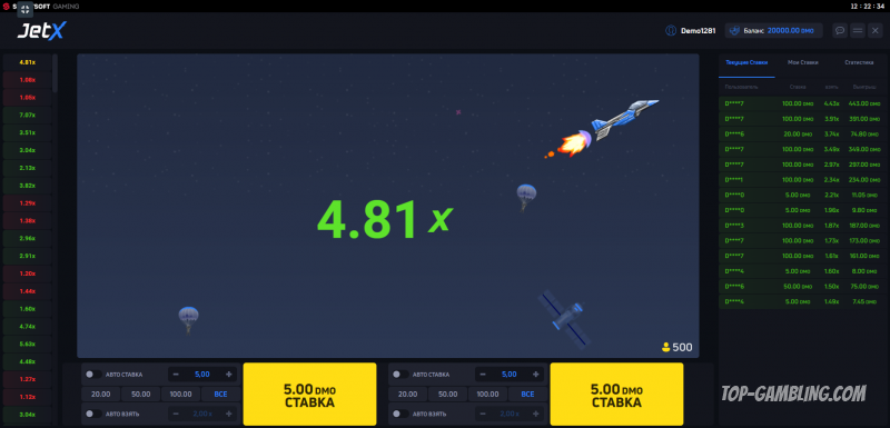 Большинство коэффициентов в JetX попадают в диапазон от ×1.01 до ×2.5. Это происходит потому, что вероятность низкого множителя изначально заложена как высокая, чтобы удерживать RTP на уровне 96%.