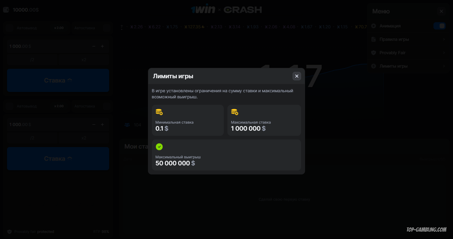 Алгоритм генерации коэффициента основан на случайных числах. Это значит, что нельзя точно предсказать, где именно график «упадёт»: это может произойти уже на ×1.02, а может — и на ×20, ×50 или даже выше.
