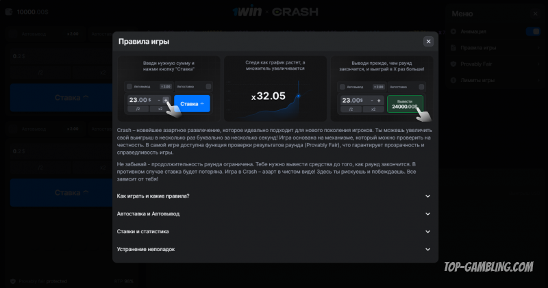 В этот момент игрок уже сделал ставку и наблюдает за тем, как увеличивается потенциальный выигрыш. Но главный риск в том, что этот рост может прерваться в любую секунду — система случайным образом «обрушивает» график, и если вы не нажали кнопку вывода вовремя, вся ставка сгорает.