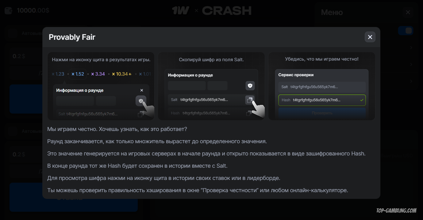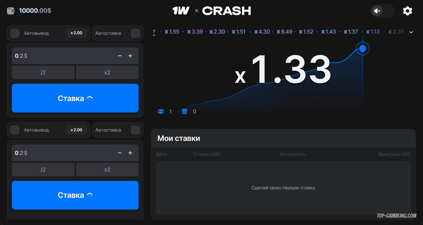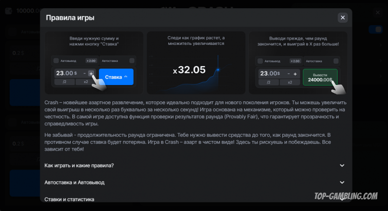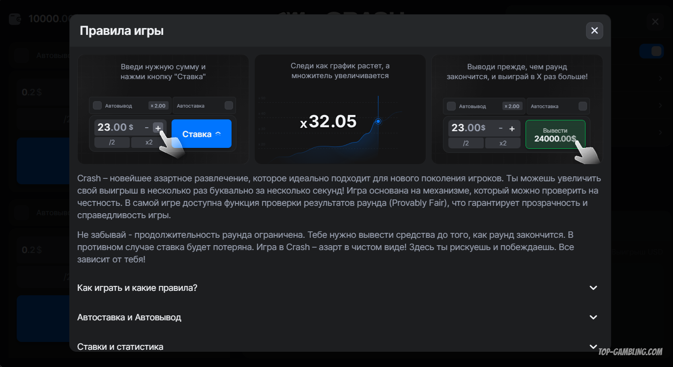 Но предсказать, когда произойдёт «краш», невозможно — это делает игру азартной, напряжённой и очень захватывающей.
