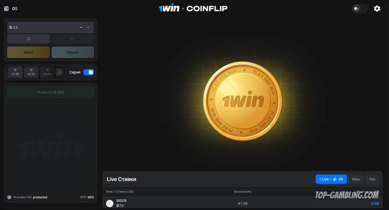 Coinflip 1win — игра на удачу с подбрасыванием монеты