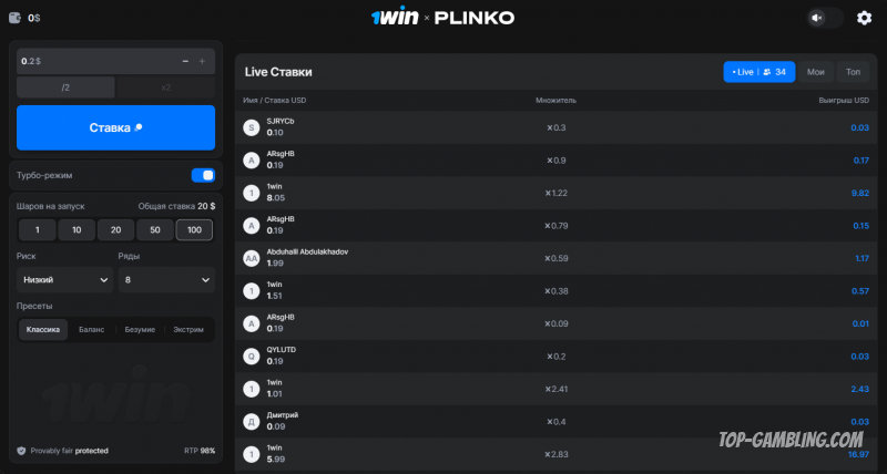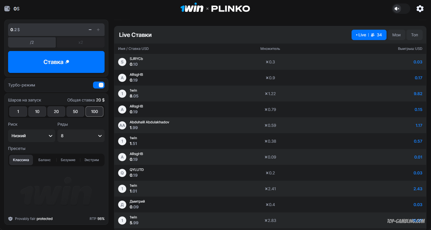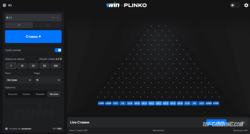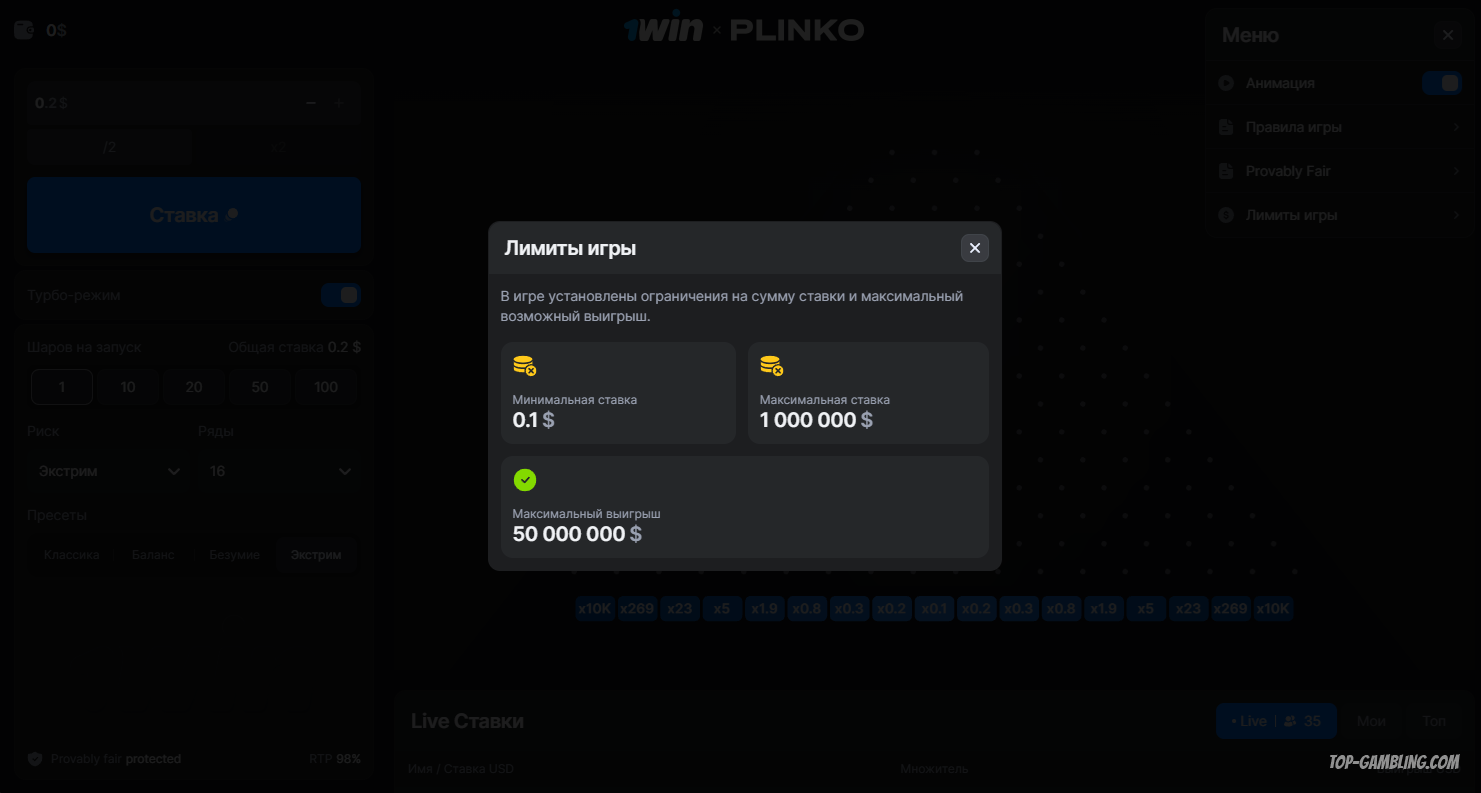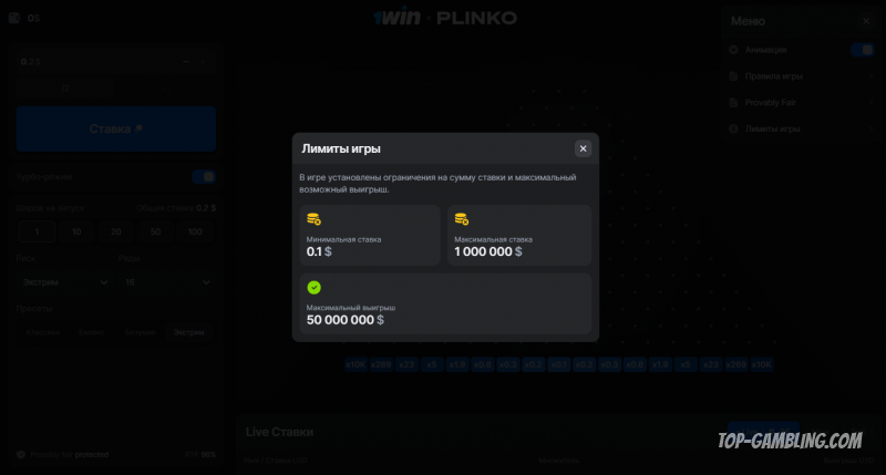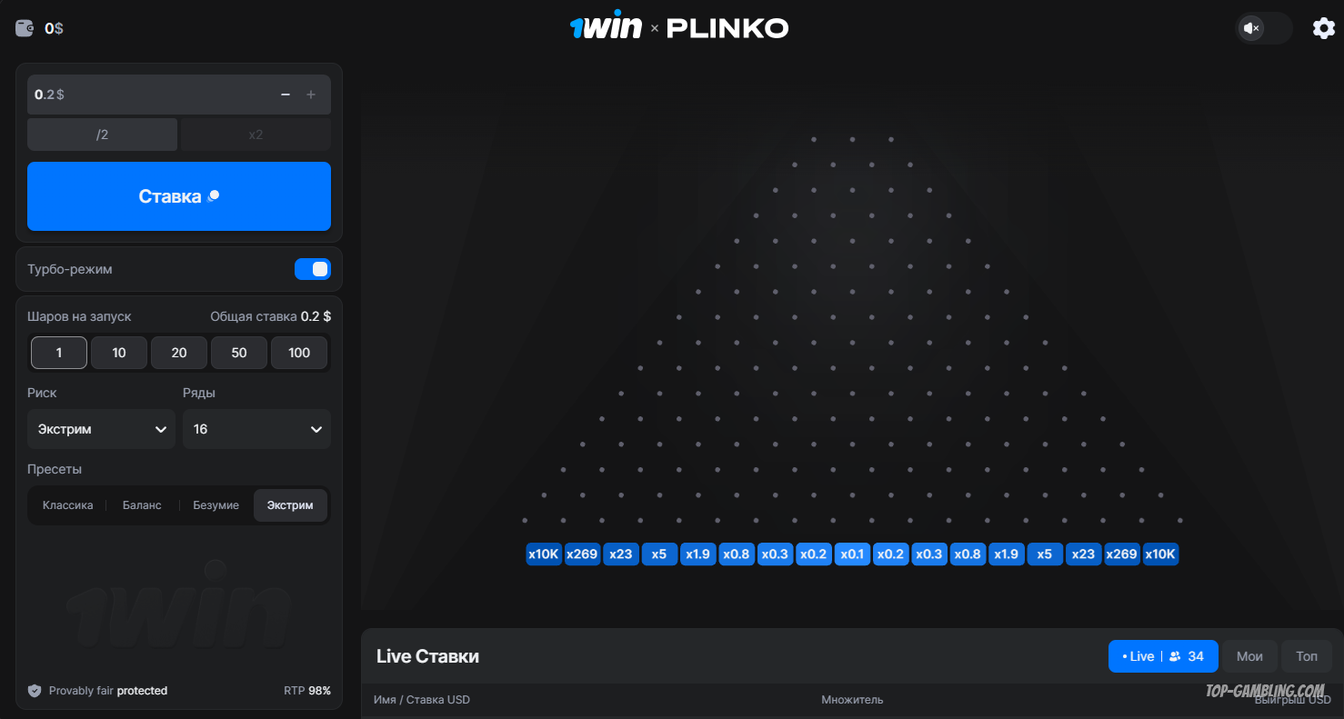 Главная цель игрока — получить максимальный множитель, в который упадёт шарик. При этом выбор уровня риска, ширины поля и количества шаров напрямую влияет на потенциальный выигрыш и волатильность игрового процесса.