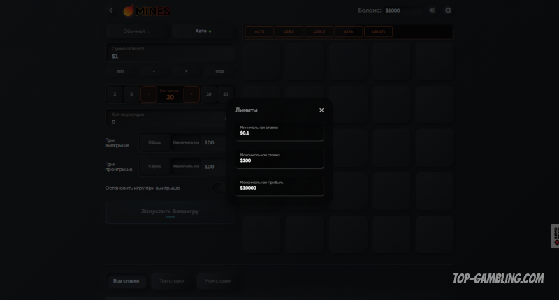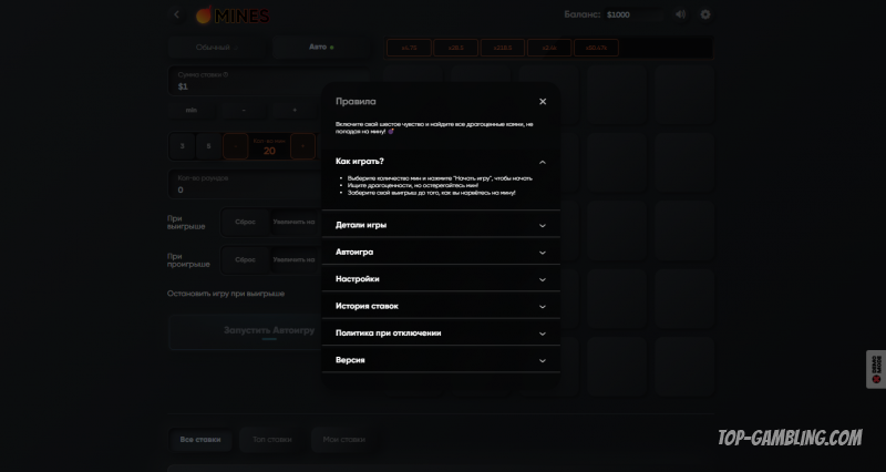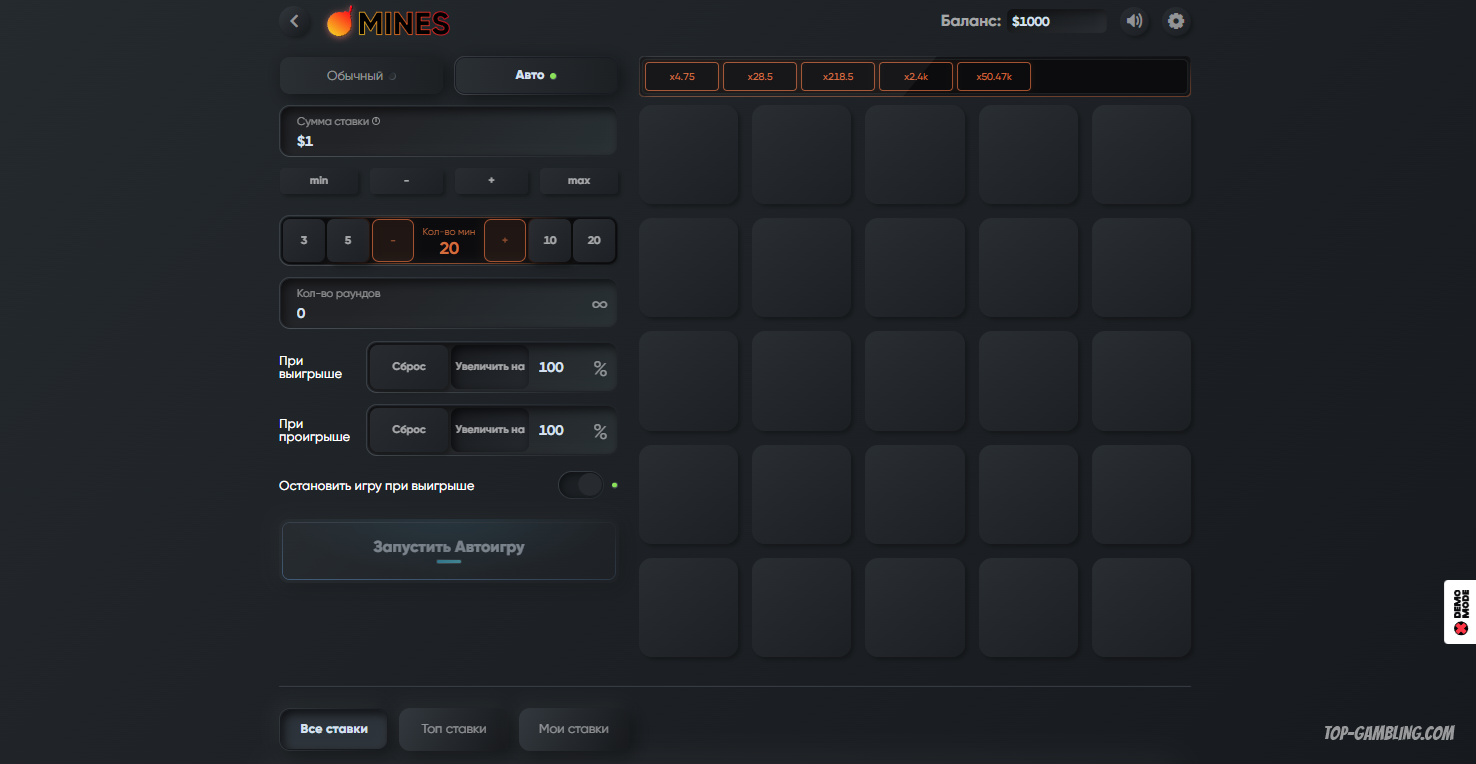 - Не повышайте резко количество мин или ставку после выигрыша.